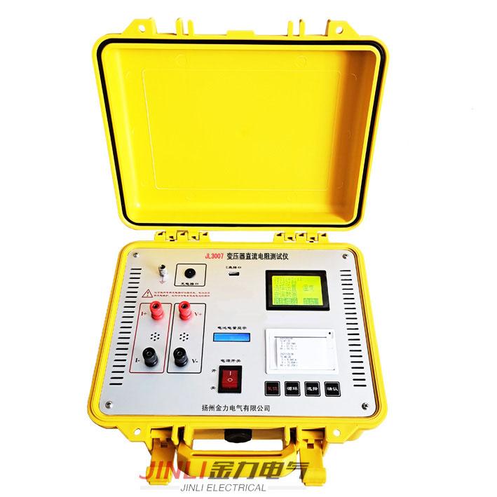 JL3007系列變壓器直流電阻測試儀是新一代變壓器直流電阻的測試儀器,它能根據(jù)不同型號的電力變壓器自動選擇測試電流,以快的速度顯示測試結(jié)果。直流電阻快速測試儀從5A-50A并且具有存儲、打印、放電指示等功能,內(nèi)置不掉電存儲器,可長期保存測量數(shù)據(jù),液晶顯示器的采用使得該儀器人機(jī)界面良好,是直流電阻測試工作中的設(shè)備。
