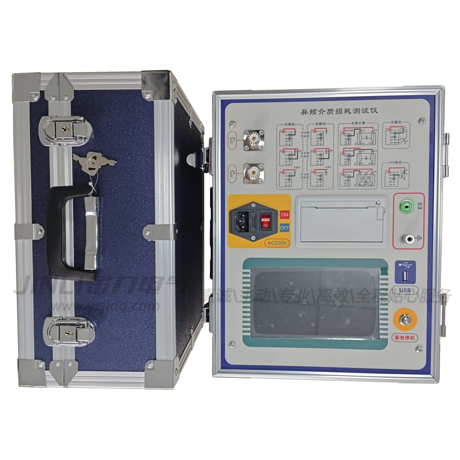 JL3003變頻抗干擾介質損耗測試儀是發電廠、變電站等現場或實驗室測試各種高壓電力設備介損正切值及電容量的高精度測試儀器。儀器為一體化結構,內置介損測試電橋,可變頻調壓電源,升壓變壓器和SF6 高穩定度標準電容器。測試高壓源由儀器內部的逆變器產生,經變壓器升壓后用于被試品測試。頻率可變為45.0Hz、50.0Hz、55.0Hz、47.5Hz52.5Hz、45.0Hz55.0Hz、60.0Hz、65.0Hz、57.5Hz62.5Hz、55.0Hz65.0Hz,JL3003變頻抗干擾介質損耗測試儀采用數字陷波技術,避開了工頻電場對測試的干擾,從根本上解決了強電場干擾下準確測量的難題。同時適用于全部停電后用發電機供電檢測的場合。