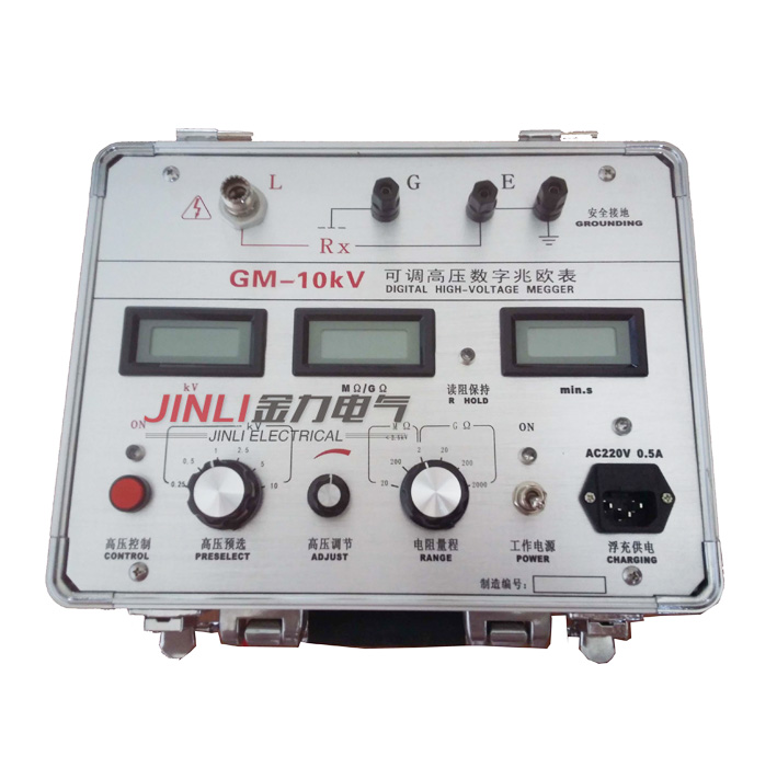 GM-5kV | 0.1、0.25、0.5、1、2.5、5kV | ±(5%+10V) | >10mA | 0.01 MΩ~1999 GΩ |