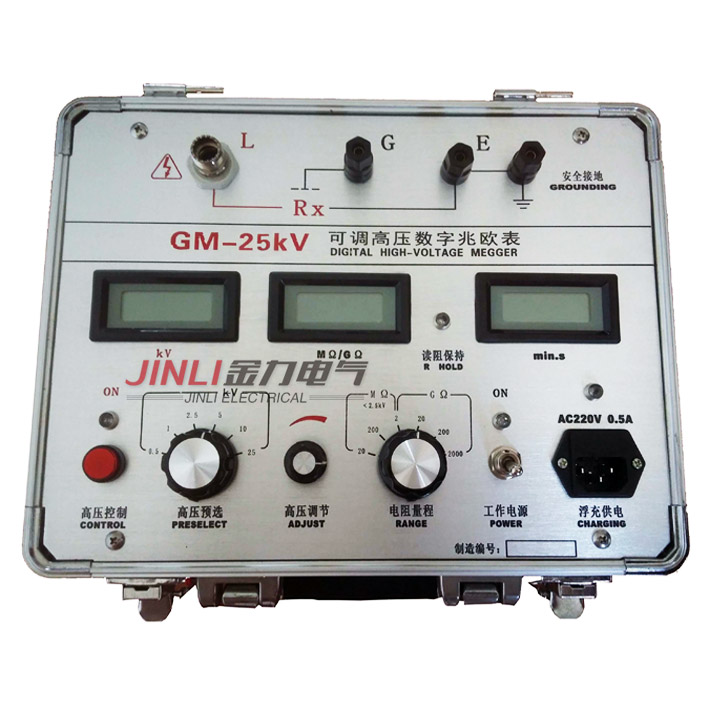 GM-25kV | 0.5、1、2.5、5、10、25kV | ±(5%+10V) | >10mA | 0.01 MΩ~1999GΩ |