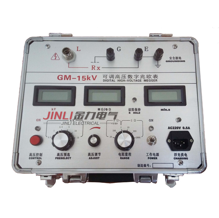 GM-15kV | 0.5、1、2.5、5、10、15kV | ±(5%+10V) | >10mA | 0.01 MΩ~1999GΩ |
