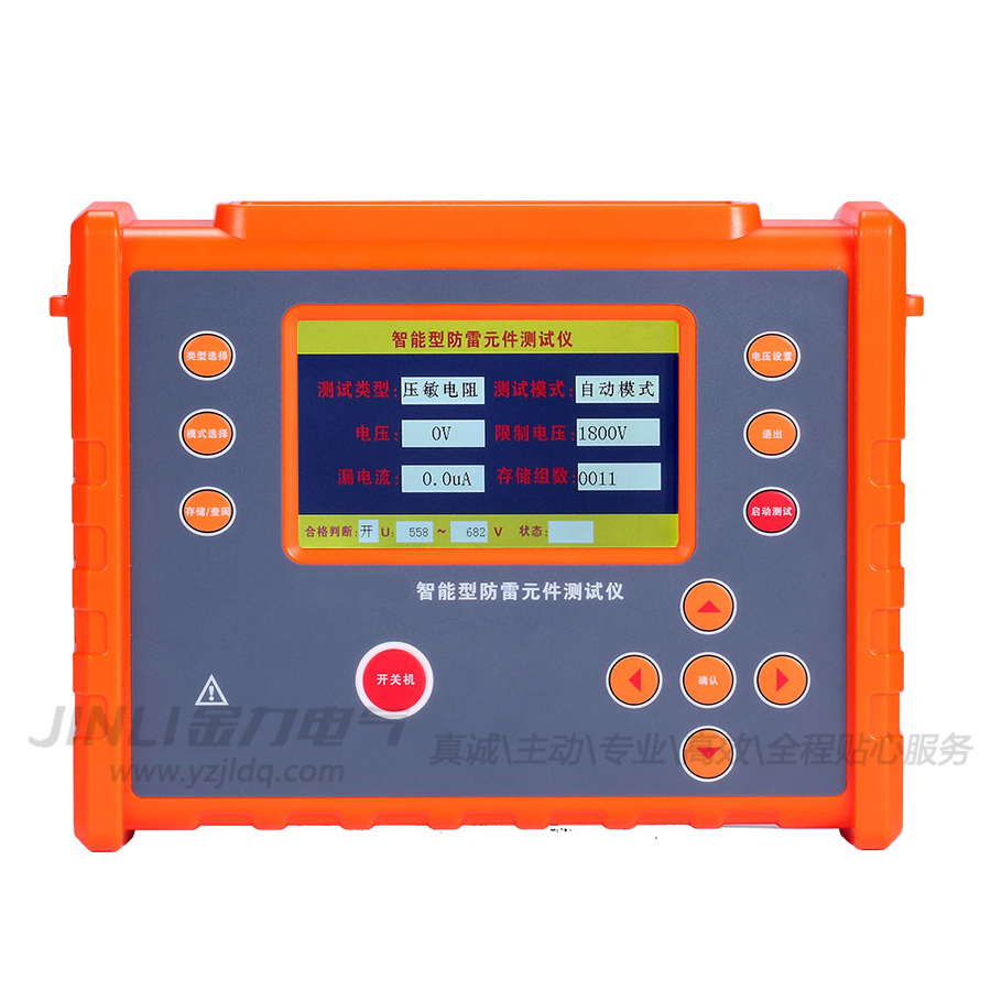 JL8007智能型防雷元件測試儀又名防雷元件測試儀、SPD現場測試儀,用于避雷器、防雷器、浪涌保護器、壓敏電阻、金屬陶瓷放電管、直空避雷管等性能測試的儀表。本儀表采用充電功能離線使用克服了傳統產品要插電使用不方便現場操作的缺點、電壓輸出2000V應用范圍更加廣泛、使用高壓短路保護、自動放電功能、儀表可靠耐用。同時具備絕緣電阻測試功能、采用豪華大彩屏幕顯示、數據存儲、數據查閱、合格判斷、自動關機、USB數據上傳等功能。整機美觀,量程寬廣,分辨率高,操作便捷,攜帶方便,準確、可靠、性能穩定,抗干擾能力強。